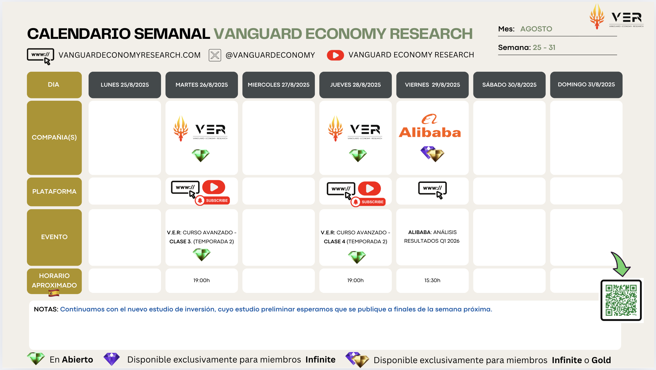 Calendario Semanal 25 - 31 Agosto